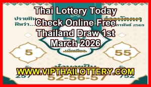 Thai Lottery Result Today 1st March 2026. Thailand Lottery Results (หวยไทย Lotto 01 March 2026). Thai Lottery Result Today Live 01/03/2026 (ผลสลากกินแบ่งรัฐบาล 01 มีนาคม 2569). Thai Lottery is the official national Lottery in Thailand. The Thai Lotto is very popular in Thailand, Saudi Arabia, Kuwait, and Pakistan. It is administered by the Government lottery office (GLO). The Lottery is drawn on every month’s first (1st) and the sixteenth (16th). In Thailand, only two forms of legalized gambling permitted by Thailand’s Government these two legalized gambling are listed below.