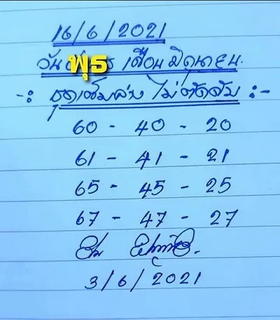 Thailand lottery 3d 3up Total 100% win 16-06-2021. We are offering Thailand Lottery 3up Total Set 100% wining chance 16 June 2021 and Non miss digit Digit calculation June 16, 2021 of Thailand lottery daily published by Eshan baba. Thailand Lottery Player’s contact us with message using on comment section or email to us for vip thail lottery premium tips of 16/6/2564.